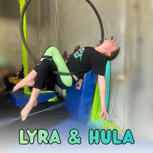 The Lyra and Hula Hooping class learn a combination of different moves on a hanging hoop and a whole heap of hula hooping skills that they will love. Students get to hang around the Lyra in various positions in a safe environment with our qualified staff and swing a hula hoop from all parts of the body. Each student can progressively work at their own pace thought out the class creating a fun and friendly environment.