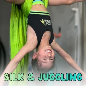 Learn a combination of silks and juggling, all under the supervision of our fully qualified teachers. Students get to climb, learn the various silk positions and juggle in a safe environment. Great for cognitive development, strength, flexibility and, more importantly, confidence. Both silks and juggling are progressive in skills where each student can work at their own pace.